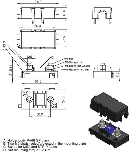 Regular price $6.75Unit price /UnavailableLow stock (9 units)Flosser 724800 Bolt On MIDI MID AMI Type Fuse Holder - Made in Europe