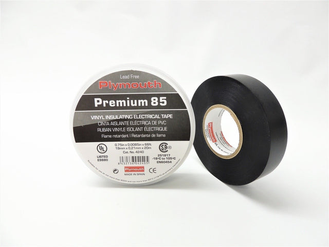 Plymouth Rubber 4240 Premium 85 Black 8.5 Mil Vinyl Electrical Tape 3/4" x 66'
