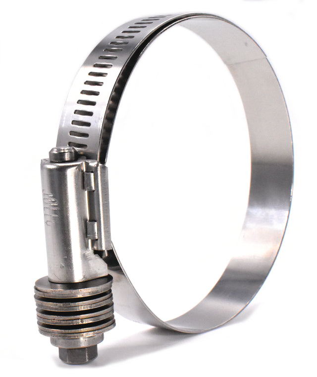 Jolly Brand's constant tension hose clamps are a superior form of clamps designed to eliminate "cold flow" leaks with their Belleville spring mechanism. This allows the clamp to automatically expand and contract as the engine temperature increases and decreases. They also feature an extended inner liner which protects softer hoses such as silicone from the worm gear serrations. The 9/16" band, housing and screw are made from stainless steel.